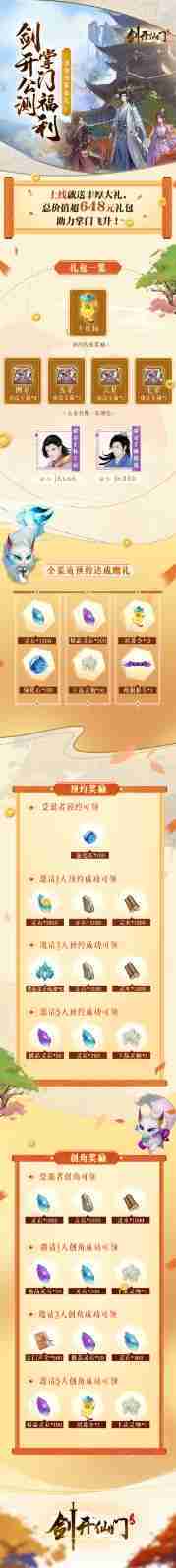 游戏为大家准备了海量的福利,,,包括上线即可获得的全渠道预约礼包、、、十连抽等福利,,,,输入密令“JK666”、、、、“JK888”即可领取紫色弟子,,,达到金丹期后还有功法宝箱可领,,助力全宗上下实力提升……所有奖励总价值超过648元,,,,而邀请好友一起体验,,,更可以获得额外的奖励哦~