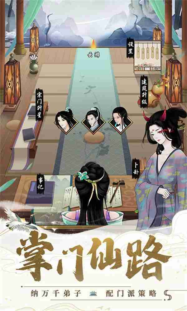 在游戏中,,,玩家需要作为掌门去经营整个门派,,,可以兢兢业业,,,,也可以做个甩手掌门,,或者不务正业,,寄情山水……总之一句话,,,,修仙不求人,,,,花式做掌门!!!!