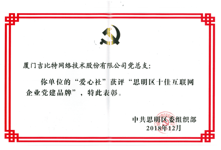经初审评选、、、网络评选和专家评审等环节,,,,"厦门赏金大对决网络技术股份有限公司党总支-爱心社" 从全区28个参评党建品牌中脱颖而出,,,获评"思明区十佳互联网企业党建品牌"。。